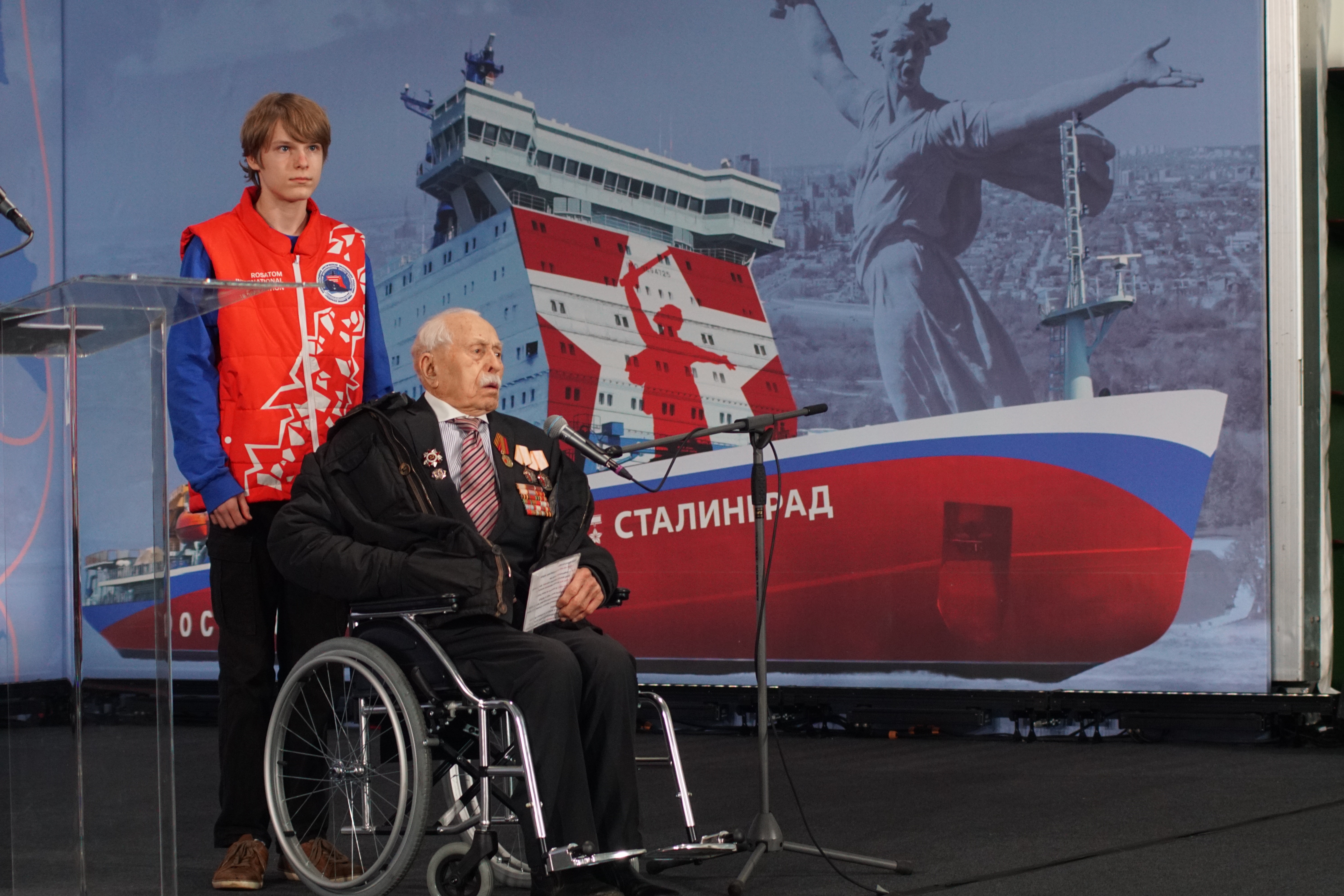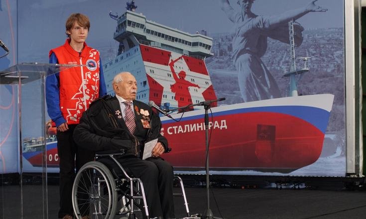 В ходе церемонии ветеран Великой Отечественной войны, участник Сталинградской битвы Павел Петрович Винокуров передал генеральному директору «Росатома» Алексею Лихачеву капсулу с землёй с Мамаева кургана. Впоследствии она будет храниться на ледоколе «Сталинград».