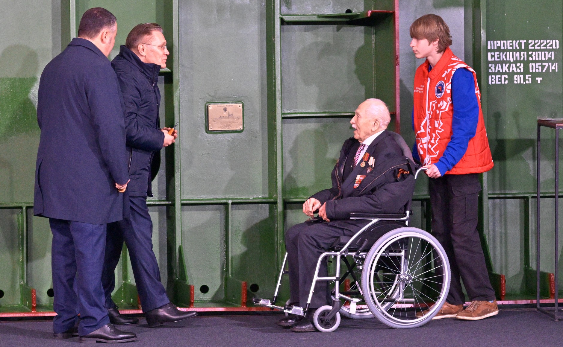 В церемонии также участвовали полномочный представитель Президента в Северо-Западном федеральном округе Игорь Руденя, генеральный директор Государственной корпорации по атомной энергии «Росатом» Алексей Лихачёв, генеральный директор АО «Объединённая судостроительная корпорация» Андрей Пучков, губернатор Волгоградской области Андрей Бочаров, Министр промышленности и торговли Антон Алиханов.