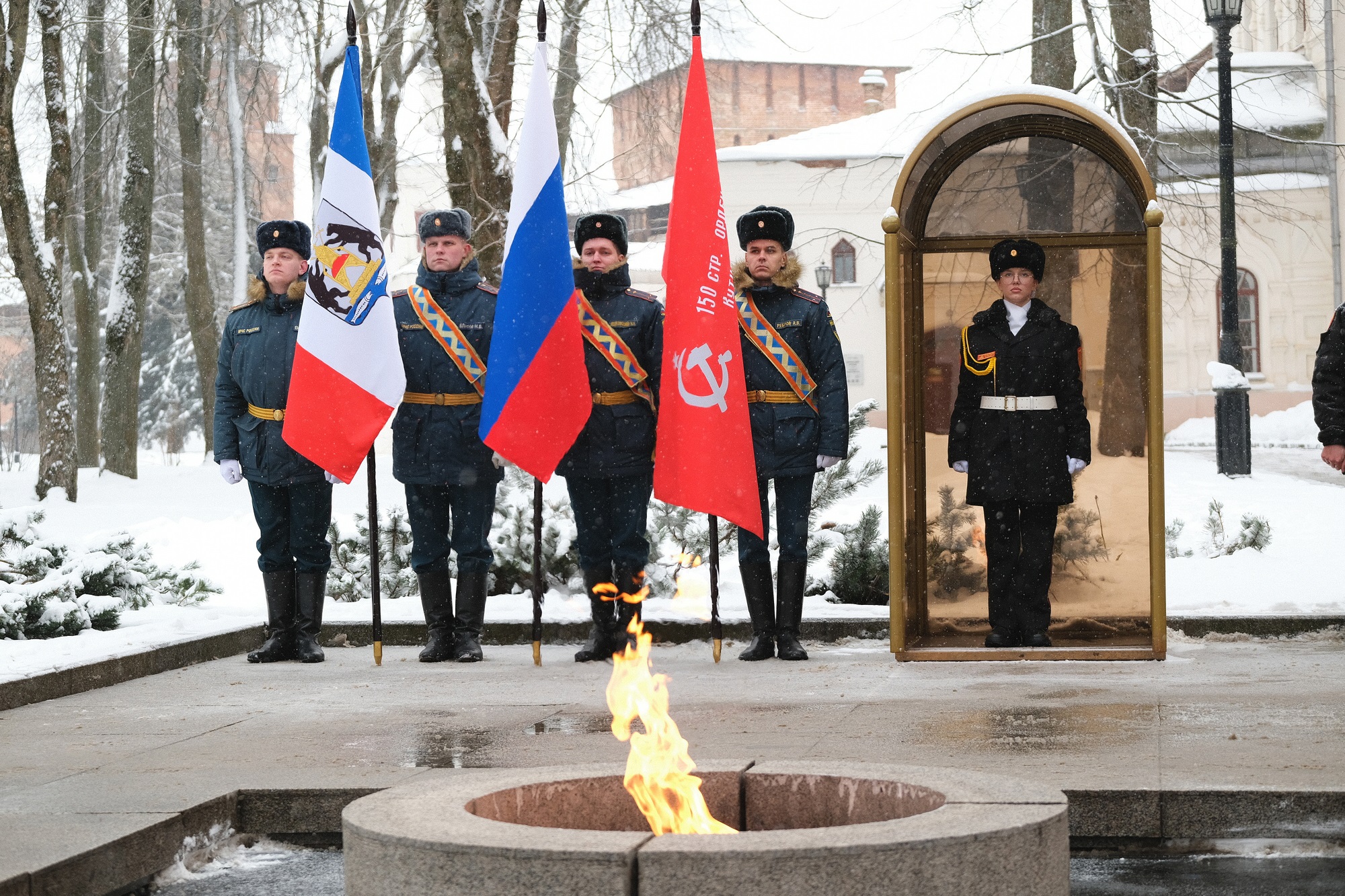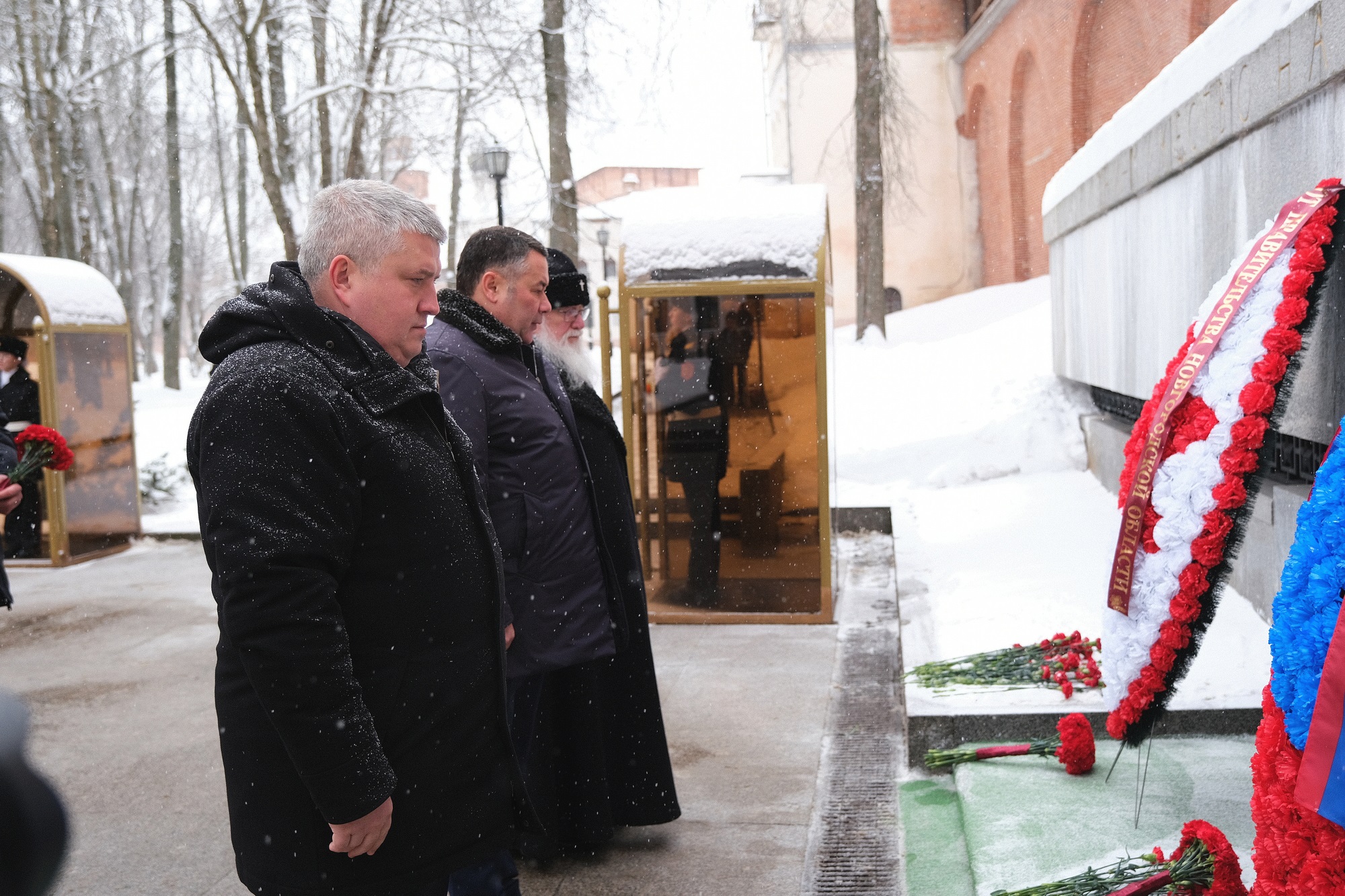 Память освободителей города сегодня, 20 января, почтили полномочный представитель Президента Российской Федерации в Северо-Западном федеральном округе Игорь Руденя, губернатор Новгородской области Александр Дронов, митрополит Новгородский и Старорусский Лев. Они возложили цветы к мемориалу «Вечный огонь славы».