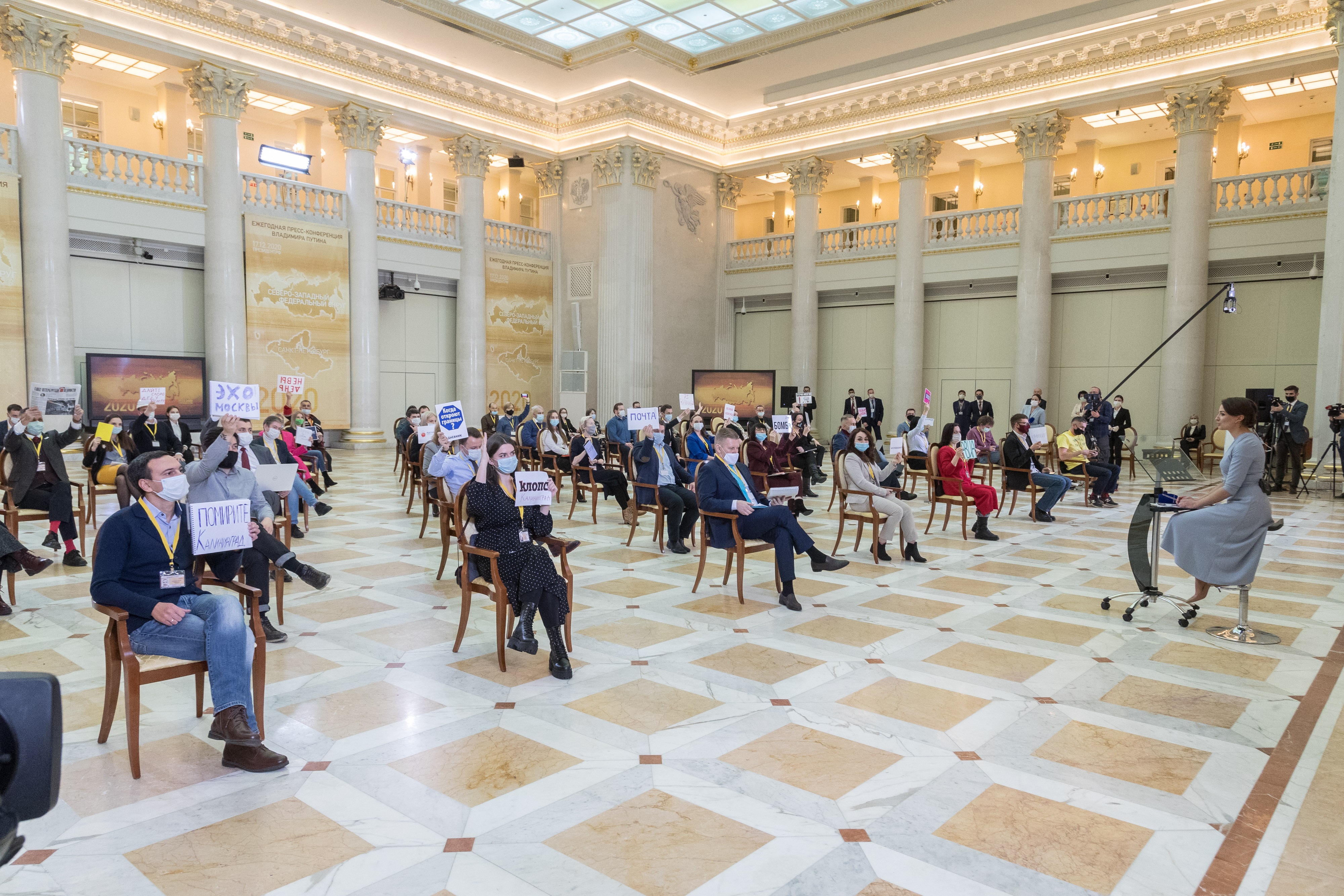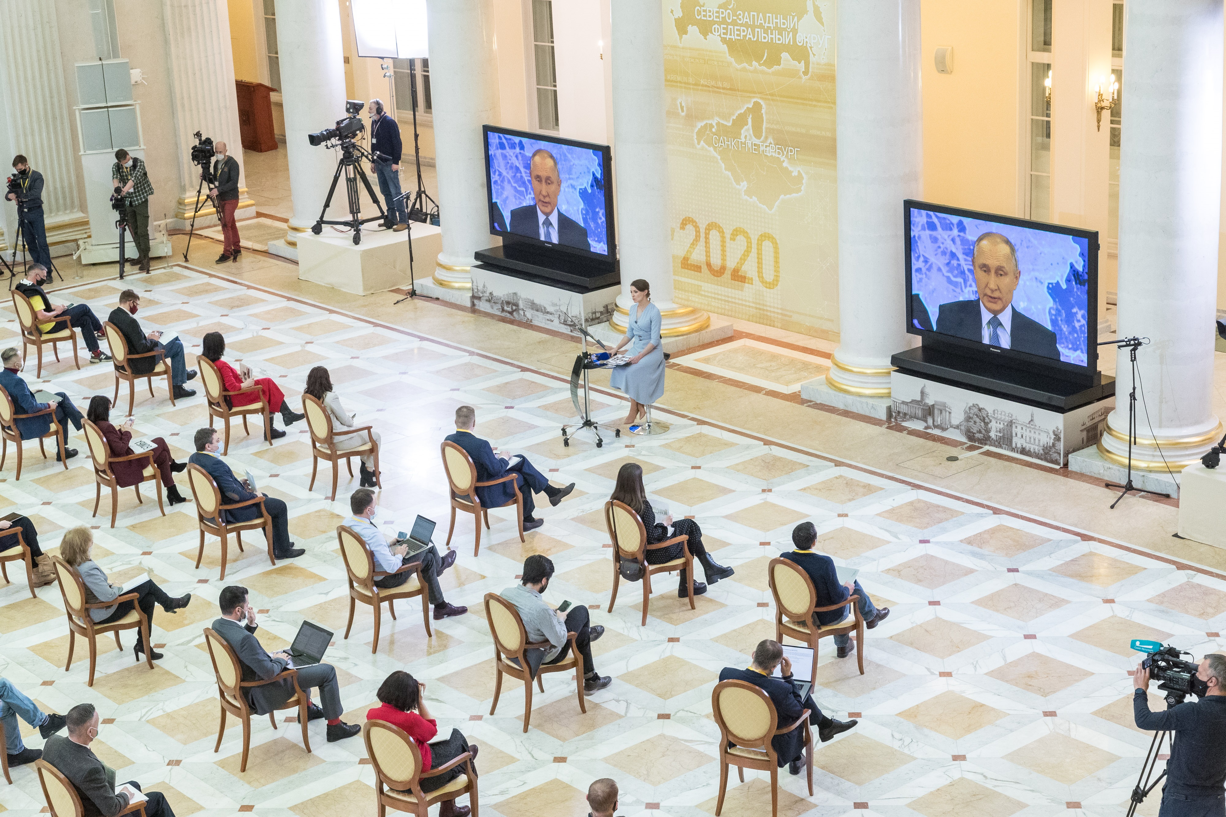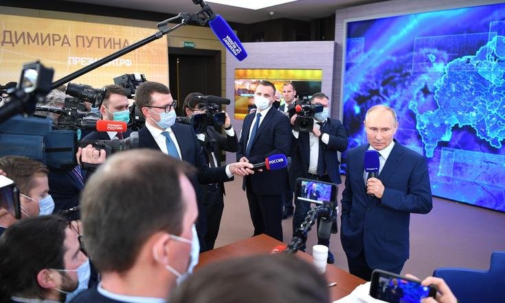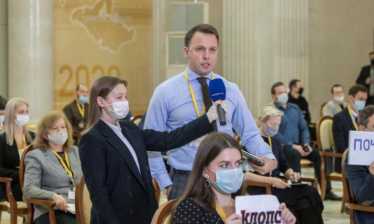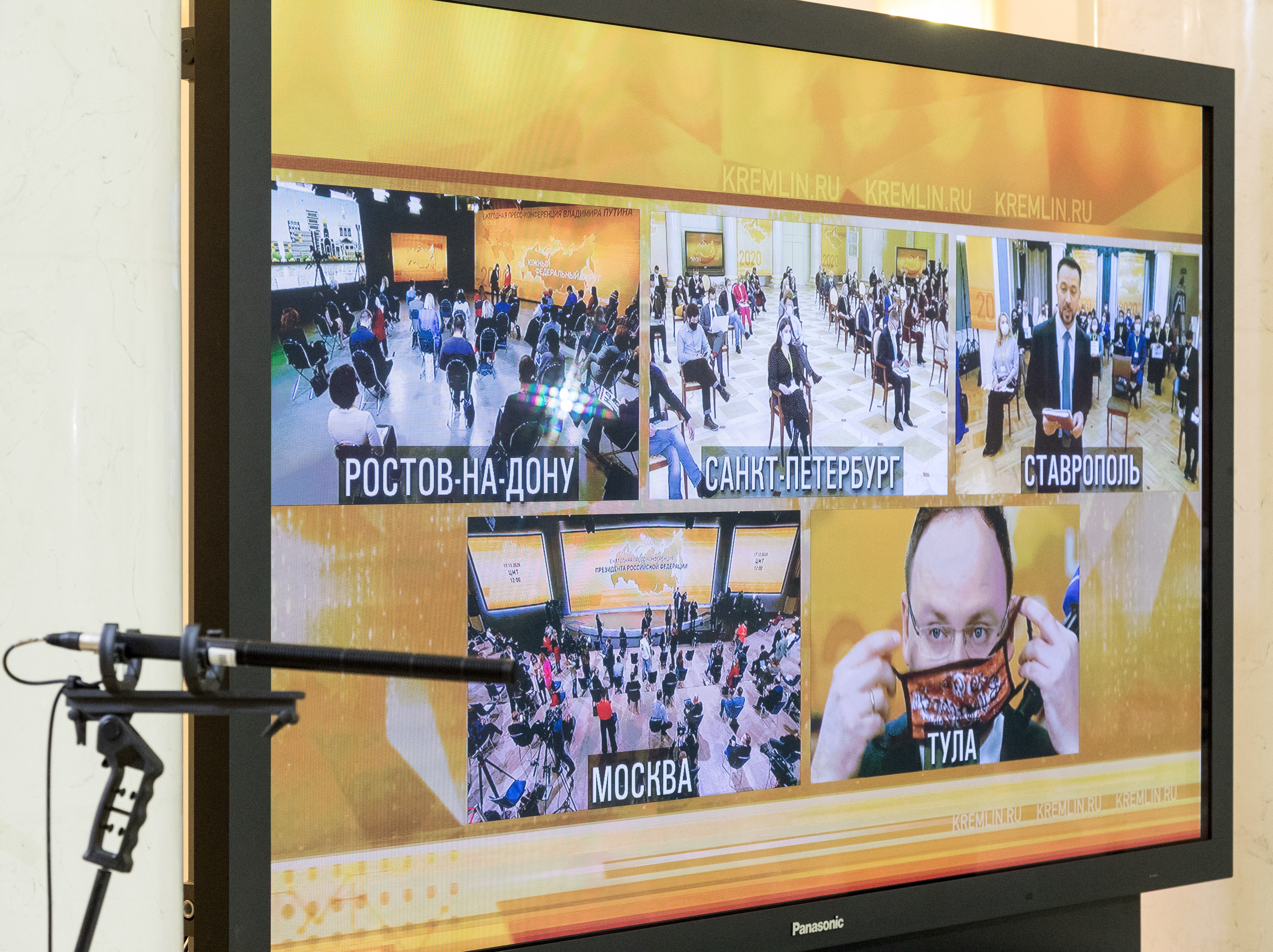 Мы сегодня проводим традиционную завершающую пресс-конференцию этого года. Но, поскольку ковидные условия не дали нам возможности провести открытую «[Прямую] линию», то мои коллеги постарались совместить одно и второе мероприятие, сделать вместе, хотя бы с элементами «Прямой линии», с тем чтобы можно было с гражданами напрямую пообщаться, поговорить, послушать их мнение о том, что в стране происходит, послушать их предложения о том, что и как нужно было бы сделать дополнительно, для того чтобы вопросы, которые у нас стоят, задачи, которые мы должны решать, решались бы лучшим образом, эффективнее.