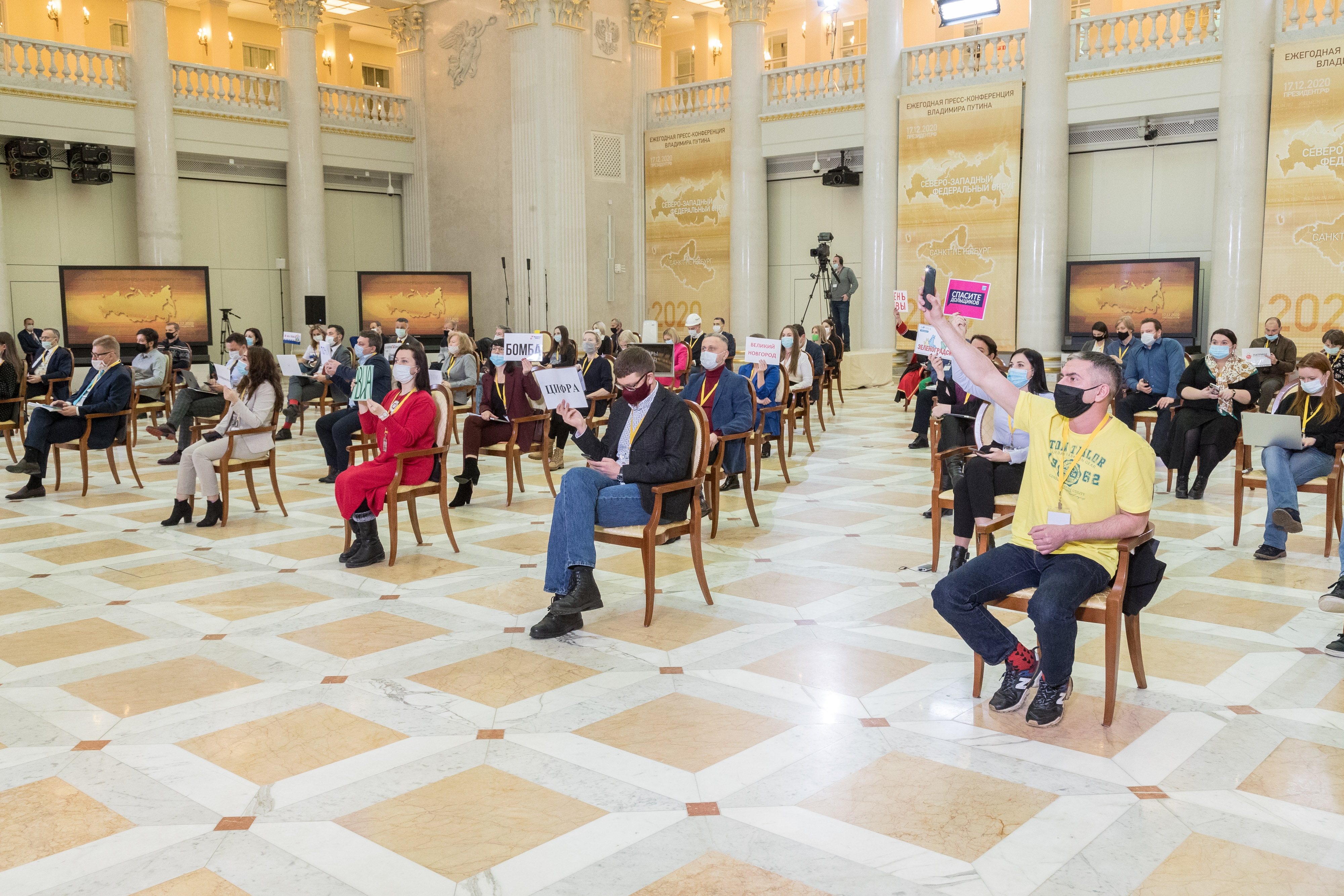 Журналисты всех регионов Северо-Западного федерального округа собрались в здании Президентской библиотеки им. Б.Н.Ельцина в Санкт-Петербурге. В мероприятии, которое прошло с соблюдением всех противоэпидемических мер безопасности, приняли участие более 60 представителей средств массовой информации Северо-Запада России.