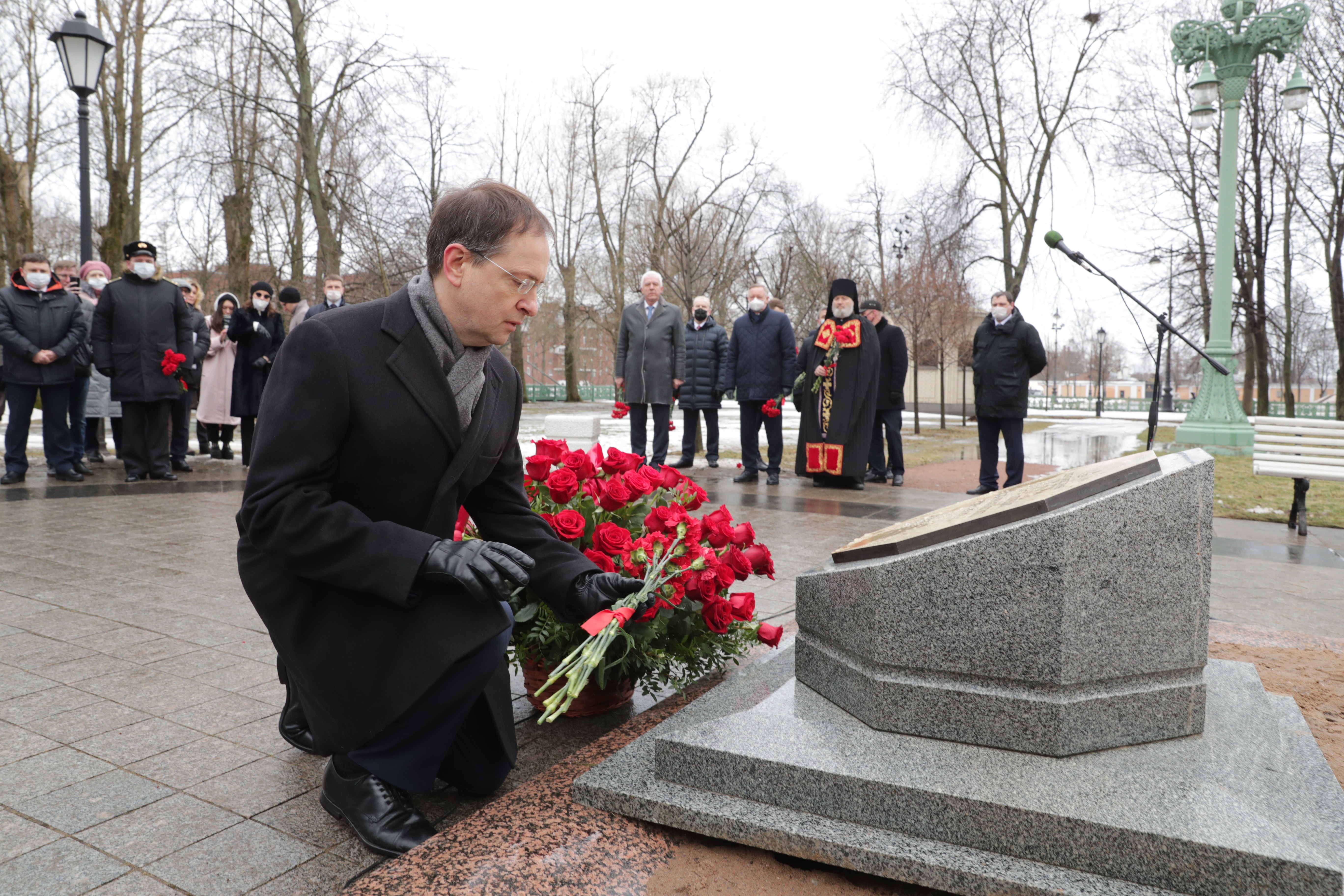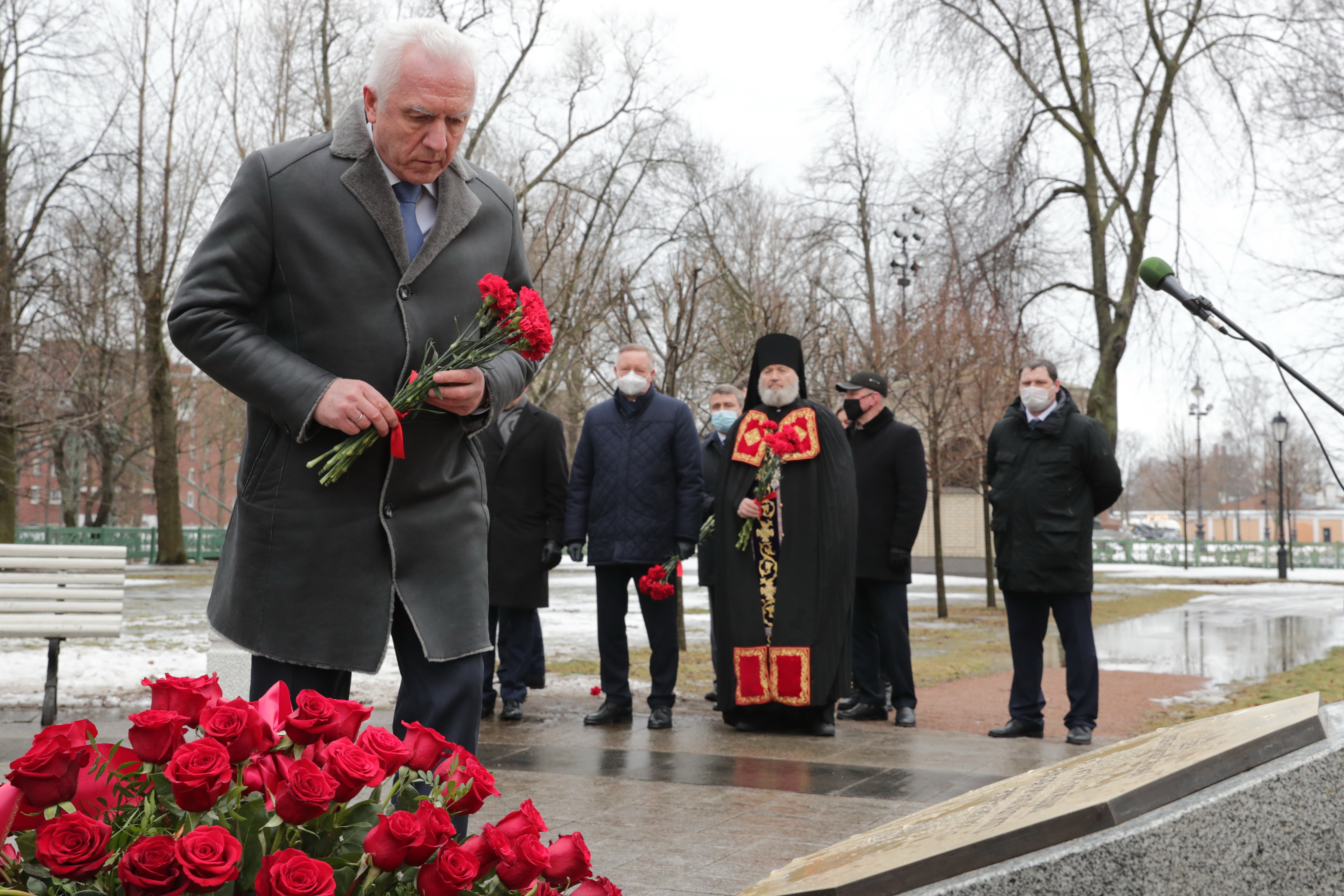Участники церемонии возложили цветы к закладному камню.
