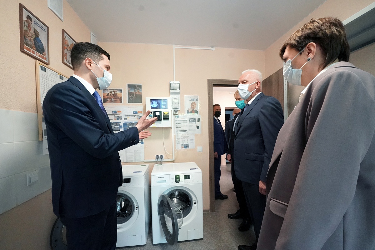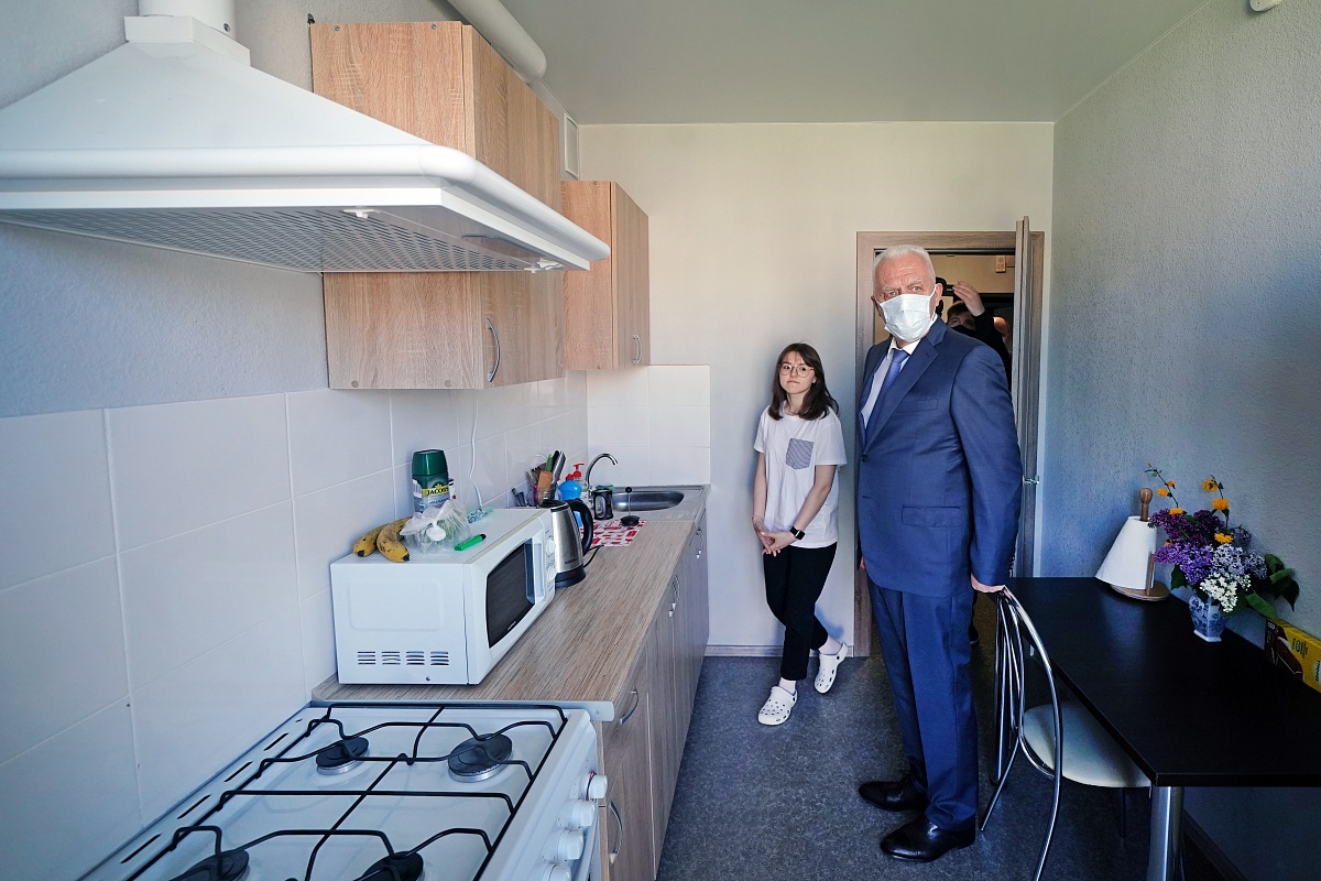 Также полномочный представитель и губернатор посетили новый комплекс из пяти студенческих общежитий БФУ имени И. Канта, расположенный по улице Юбилейной. Здесь создано 275 одно- и двухкомнатных квартир, рассчитанных на 700 студентов. Строительство велось с 2019 года в рамках нацпроекта «Образование». Общежития приспособлены для проживания лиц с ограниченными возможностями здоровья: помимо специально оборудованных квартир, все корпуса обеспечены пандусами и лифтами. Первые студенты заселились в конце апреля. Подключено 74 видеокамеры, обеспечивающие безопасность студентов.