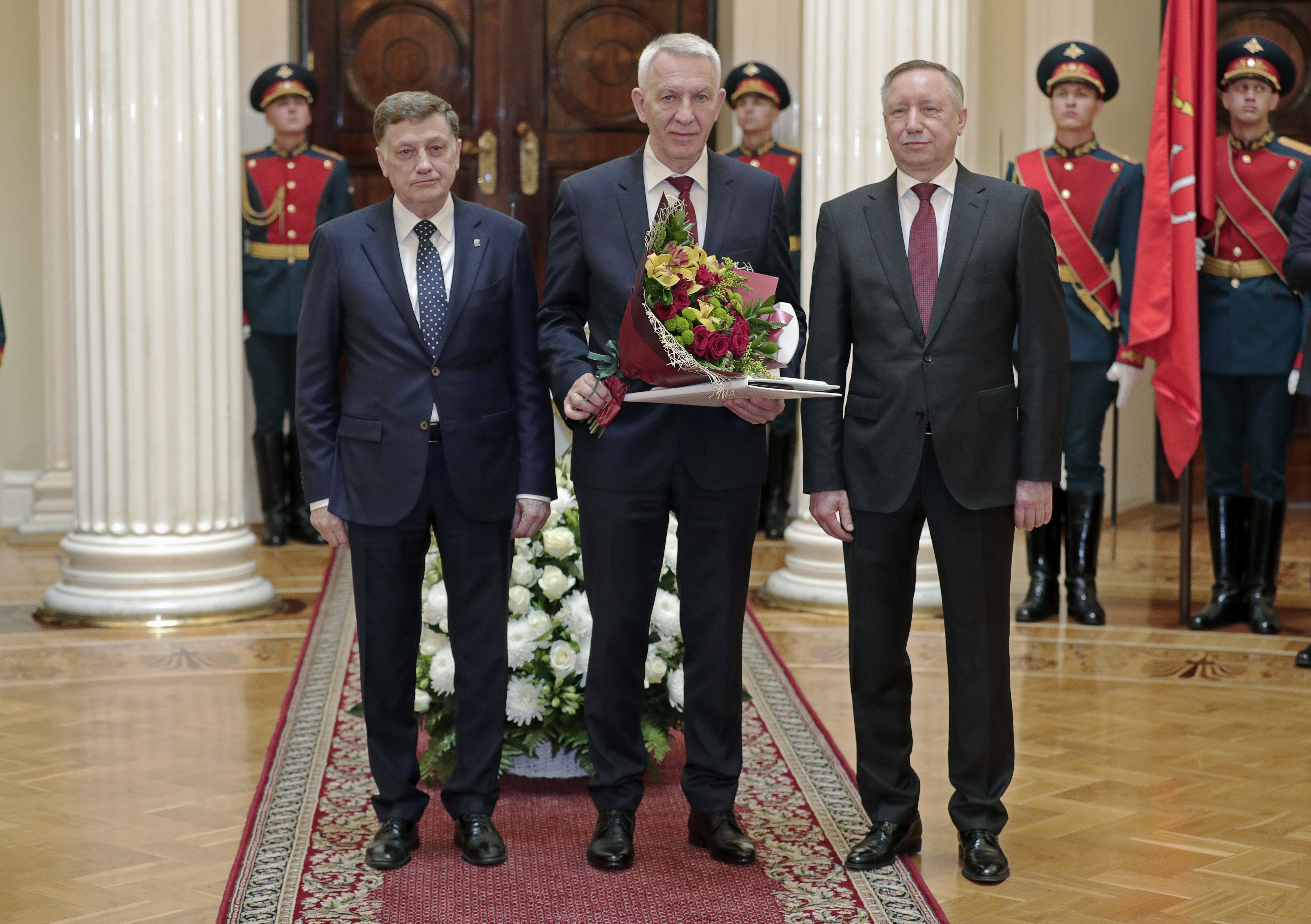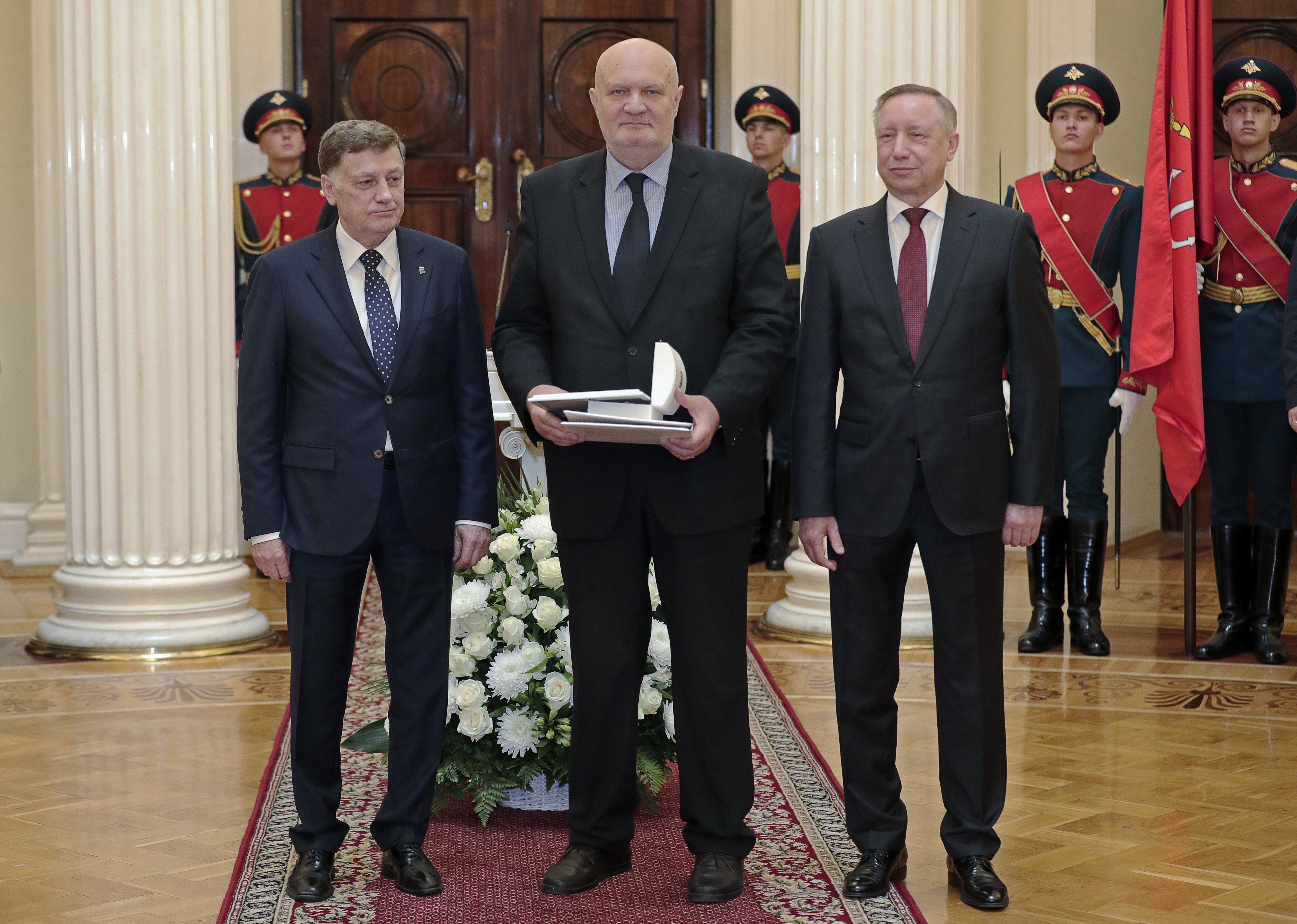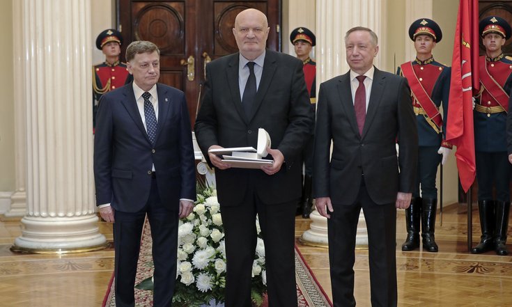 Губернатор Александр Беглов и председатель Законодательного Собрания Вячеслав Макаров вручили всем четверым нагрудные знаки, дипломы и удостоверения.