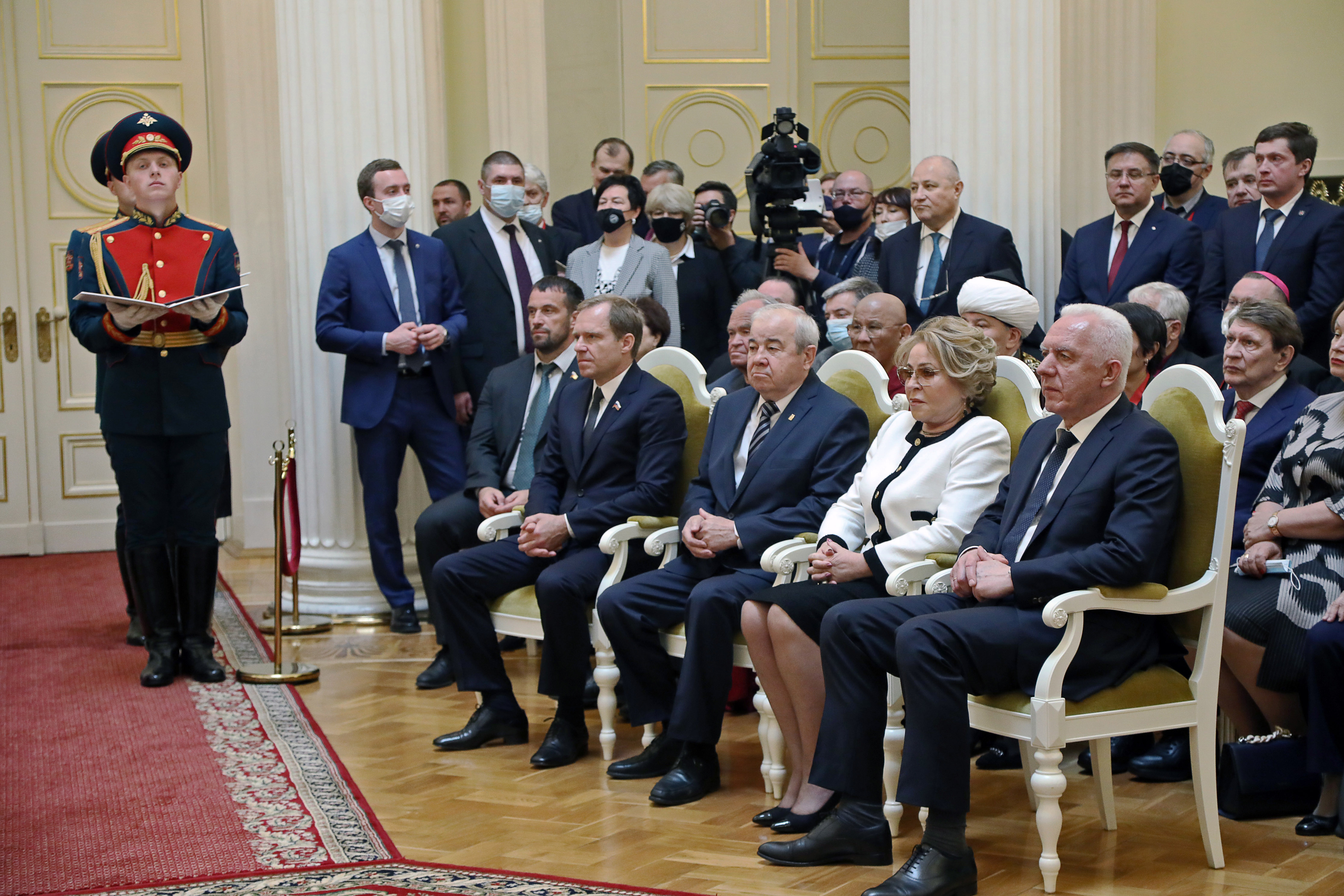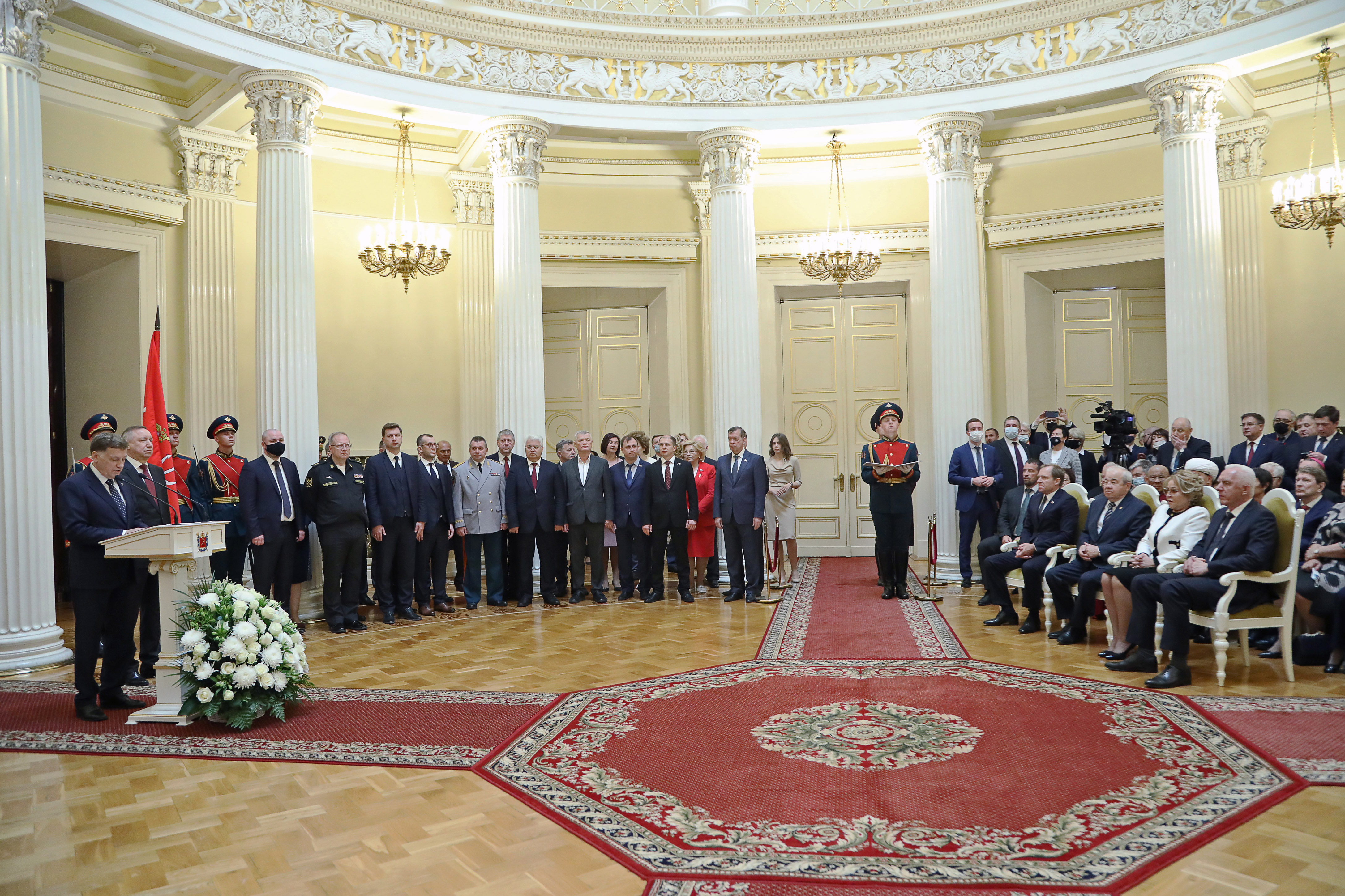 В торжественной церемонии приняли участие председатель Совета Федерации Федерального Собрания РФ Валентина Матвиенко, полномочный представитель Президента Российской Федерации в Северо-Западном федеральном округе Александр Гуцан, члены правительства города, депутаты Законодательного Собрания, Почётные граждане Санкт Петербурга, депутаты Государственной Думы и Законодательного Собрания, представители религиозных конфессий, ветеранских и общественных организаций.