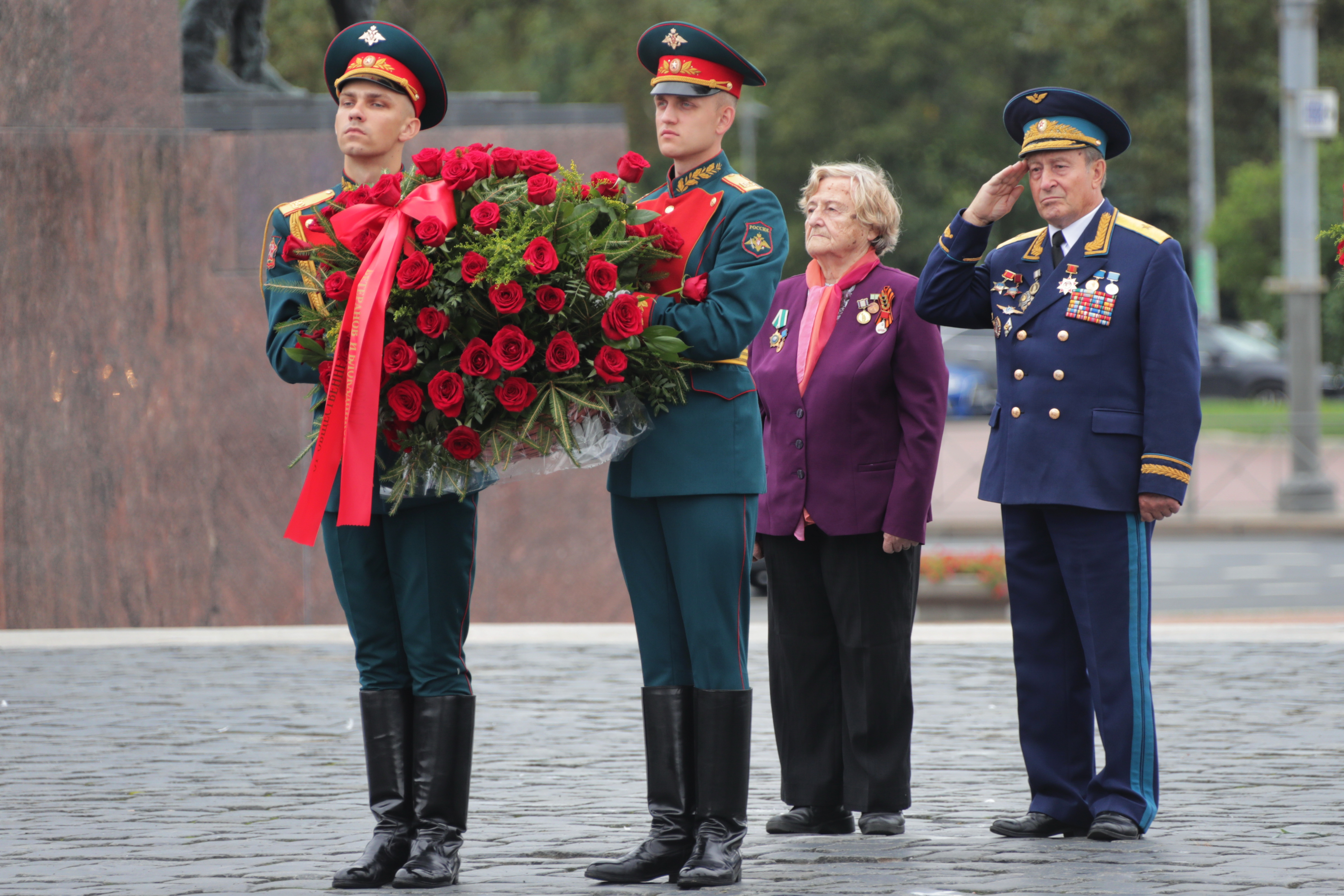 В честь 77-й годовщины окончания Ленинградской битвы у Монумента героическим защитникам Ленинграда на площади Победы прошла торжественная церемония.
