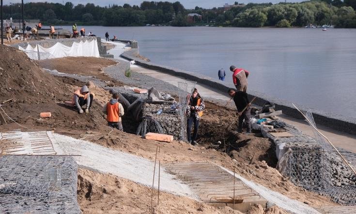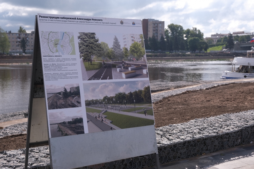 На набережной выполнено более 90% работ. Полностью переделана канализация, электрика. Установлены декоративные элементы. Завершается мощение дорожек плиткой. На обновленной набережной появятся тротуары и велодорожки, понтоны, места для отдыха, детские игровые площадки. Также на набережной будут отмечены направления девяти древних улиц, которые проходили в этом месте в средневековом Новгороде. Для их обозначения установят 56 табличек.