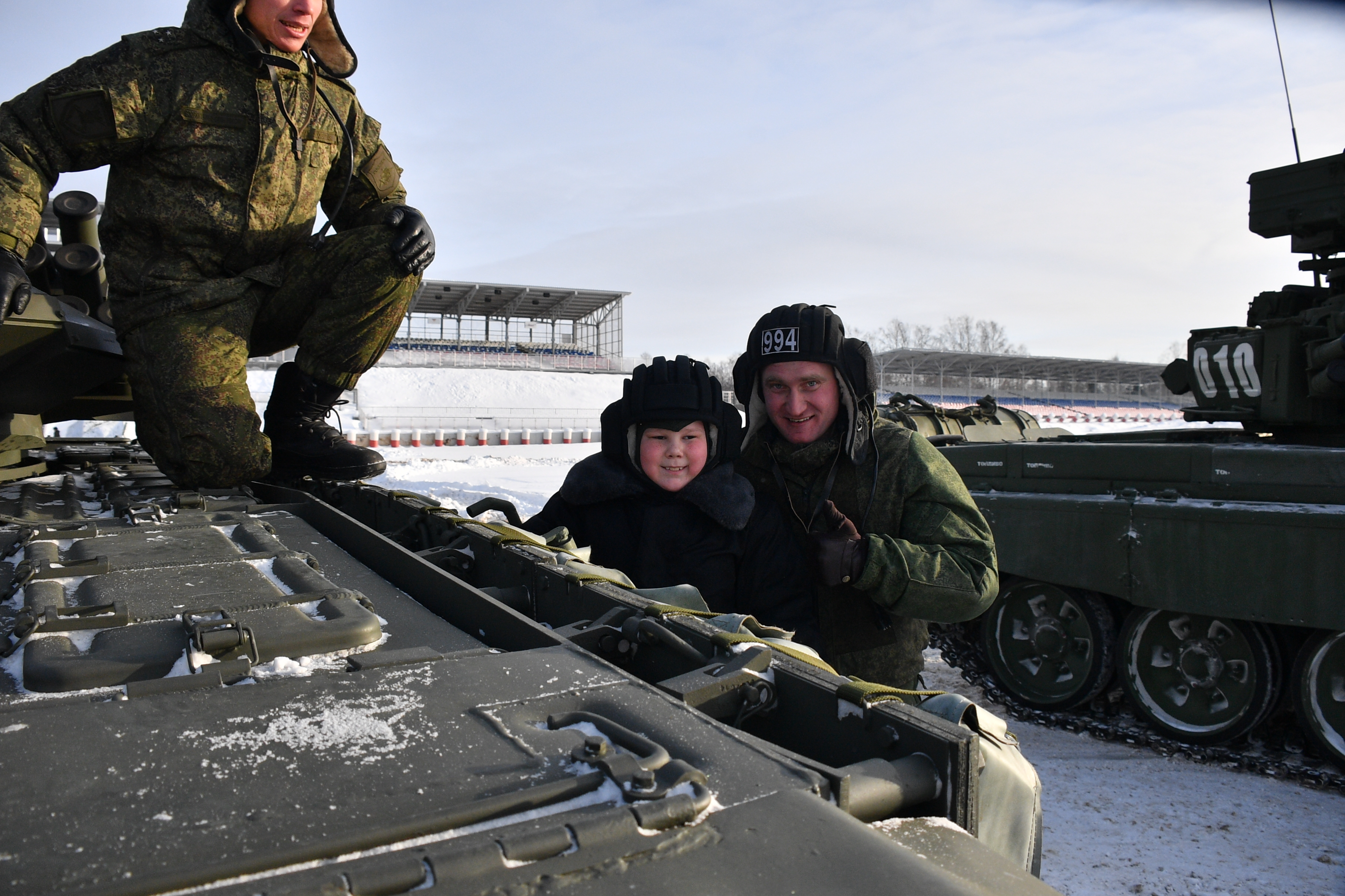 Каждый из братьев смог почувствовать себя командиром танка и наводчиком оператором во время заезда по маршруту трассы конкурса «Танковый биатлон». После этого ребят ознакомили с вооружением и военной техникой прославленной Таманской мотострелковой дивизии, а также показали штатную стрельбу из вооружения танков Т-72Б3М.