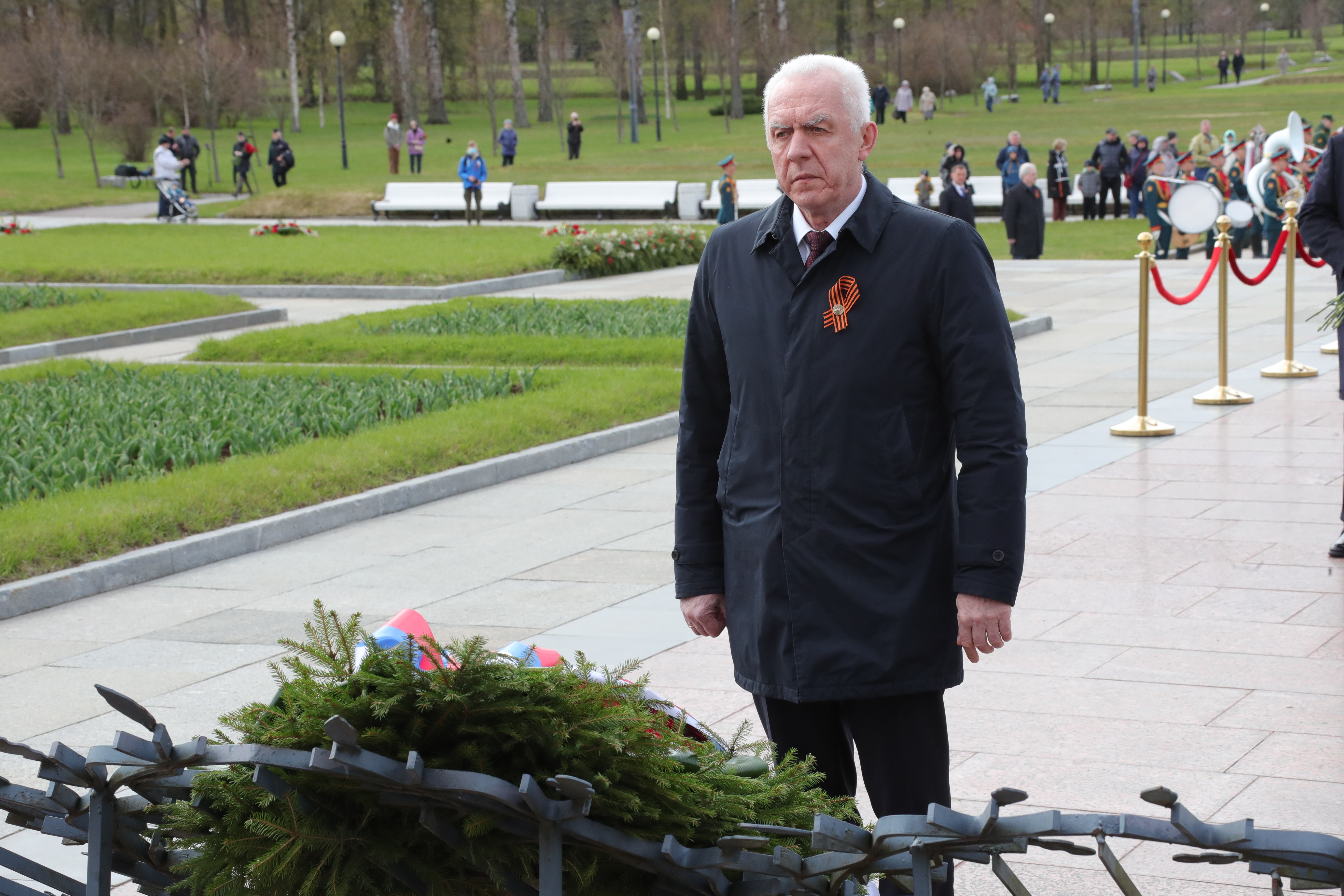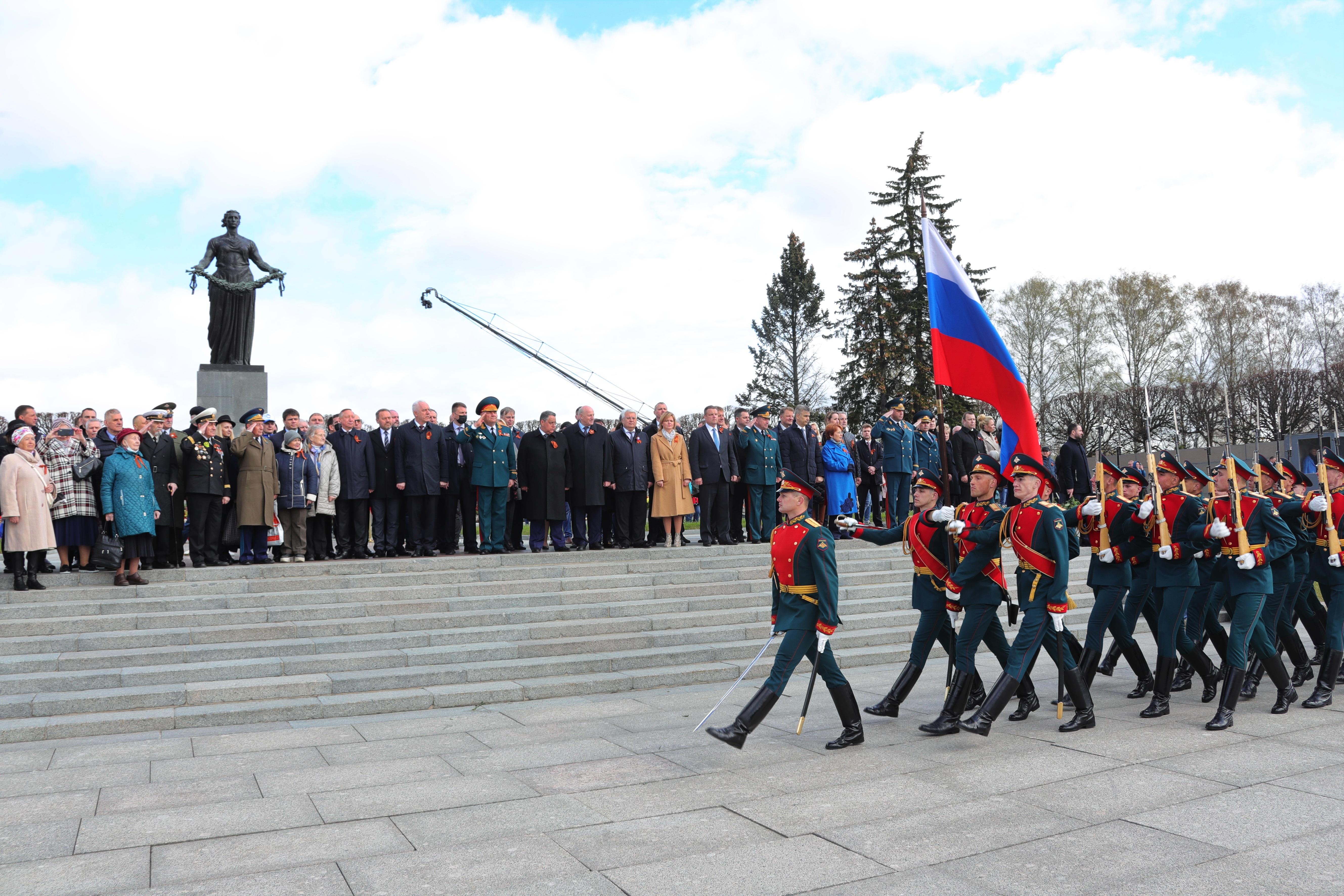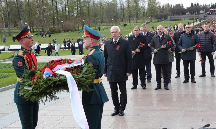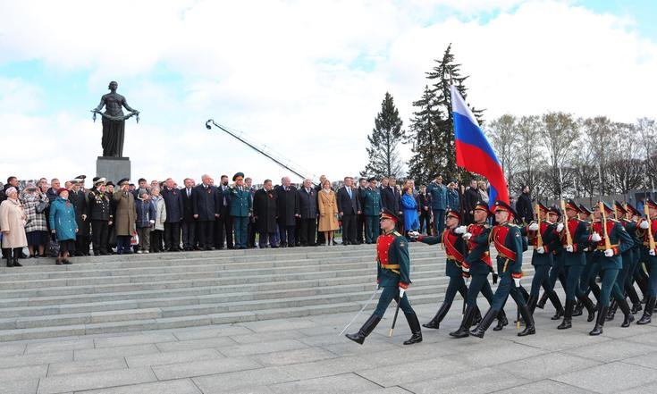 На Пискаревском мемориальном кладбище состоялась торжественно-траурная церемония возложения венков и цветов, посвященная Дню Победы.