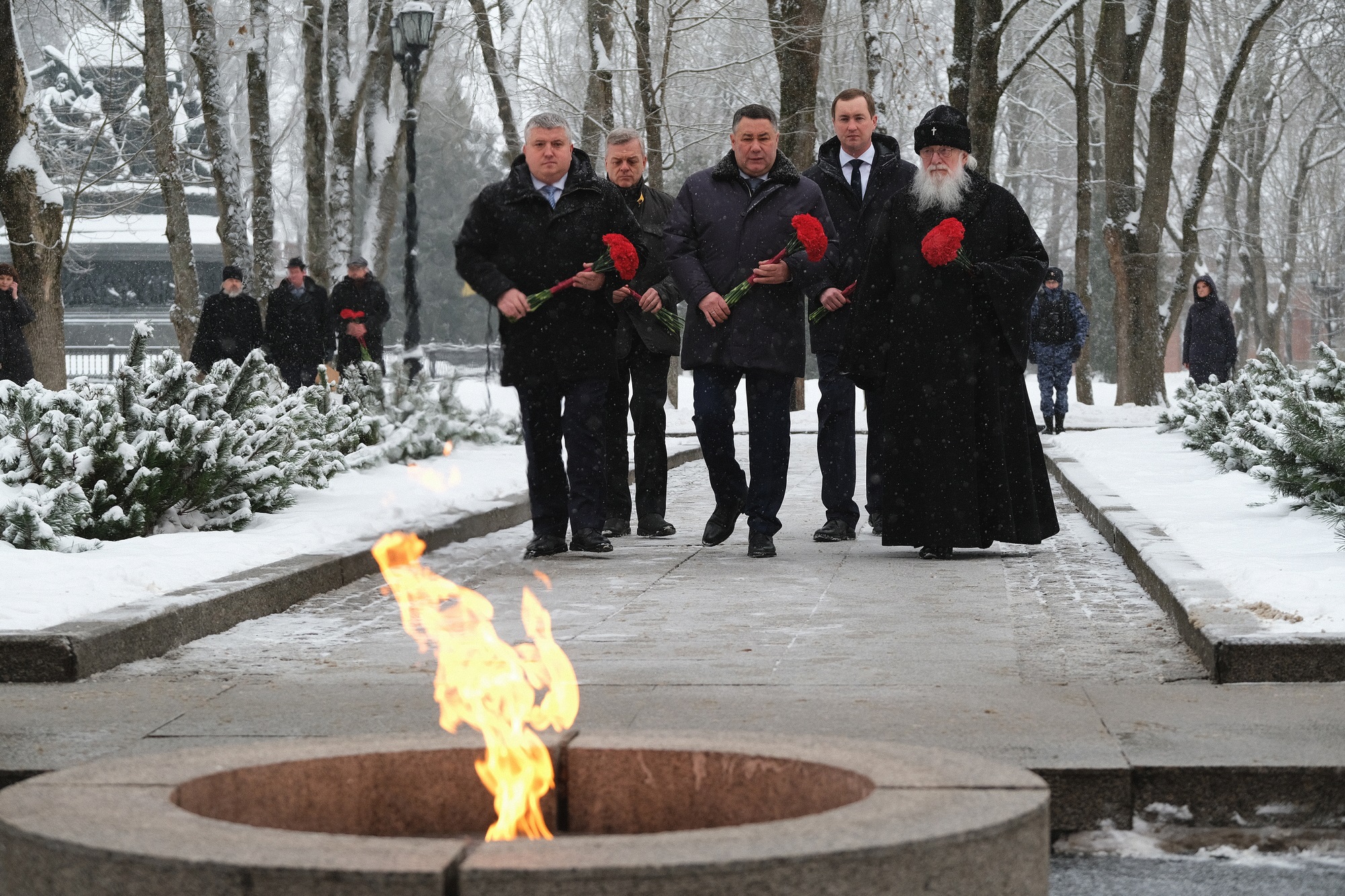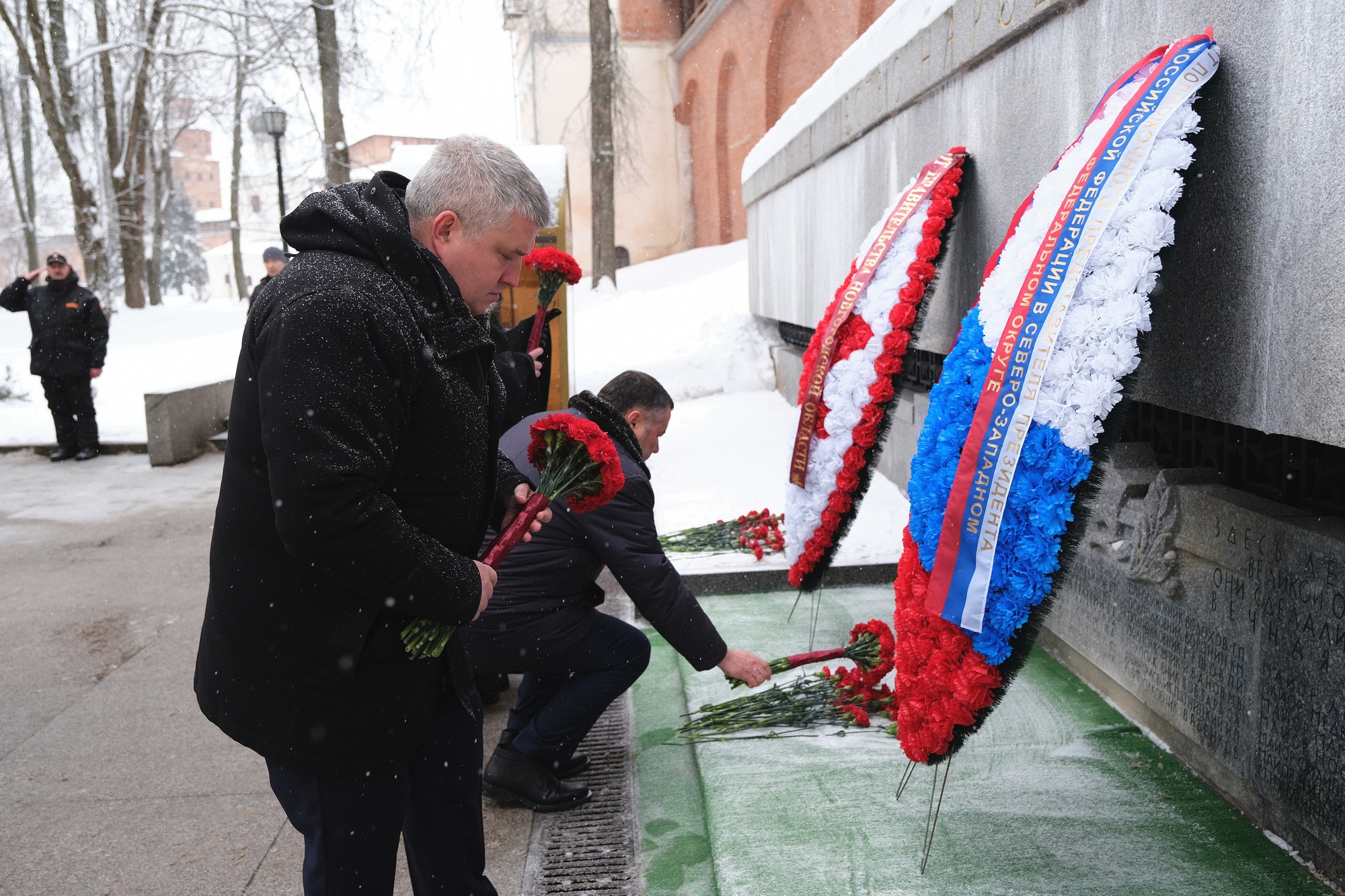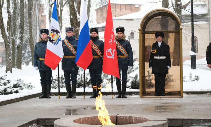 Память освободителей города сегодня, 20 января, почтили полномочный представитель Президента Российской Федерации в Северо-Западном федеральном округе Игорь Руденя, губернатор Новгородской области Александр Дронов, митрополит Новгородский и Старорусский Лев. Они возложили цветы к мемориалу «Вечный огонь славы».