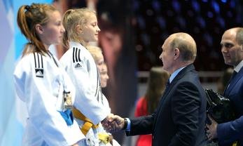Президент РФ Владимир Путин в Санкт-Петербурге посетил юношеский турнир по дзюдо памяти Анатолия Рахлина